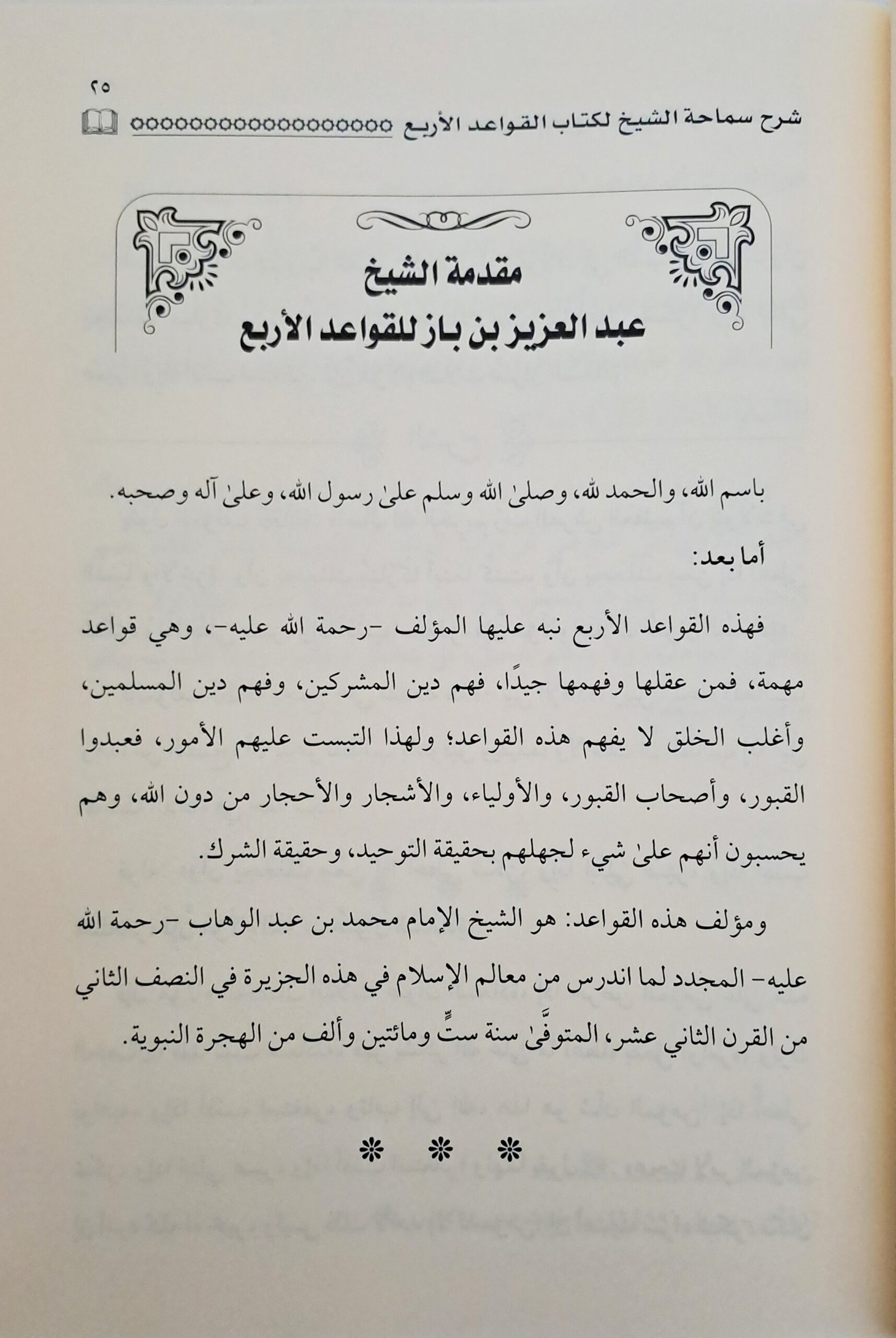 Al-Jami‘ li Shuruh al-Qawa‘id al-Arba‘ is a comprehensive compilation of explanations of Al-Qawa‘id al-Arba‘ by prominent scholars, including Shaykh Ibn Baz, Shaykh Salih al-Fawzan, Shaykh Ahmad al-Najmi, Shaykh Zayd al-Madkhali, Shaykh Rabi‘ al-Madkhali, and Shaykh ‘Ubayd al-Jabiri. The book presents clear explanations that clarify the foundations of Tawhid and warn against forms of shirk.